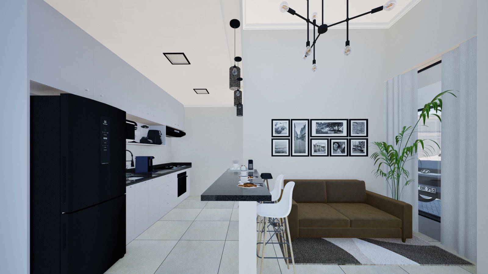 Sala com pé direito elevado;
